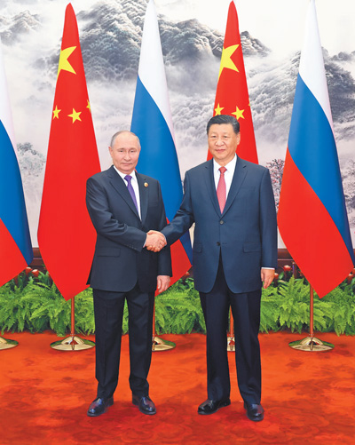 習近平強調(diào),中俄關(guān)系75年發(fā)展歷史得出的最重要結(jié)論,就是兩個相鄰的大國之間,必須始終弘揚和平共處五項原則,相互尊重、平等互信、照顧彼此關(guān)切,真正為雙方的發(fā)展振興相互提供助力。這既是中俄兩國正確相處之道,也是21世紀大國關(guān)系應(yīng)該努力的方向。中俄關(guān)系有著深厚的歷史積淀和堅實的民意基礎(chǔ),雙方要密切戰(zhàn)略協(xié)作和互利合作,堅定地走自己的發(fā)展道路,堅定維護國際公平正義。