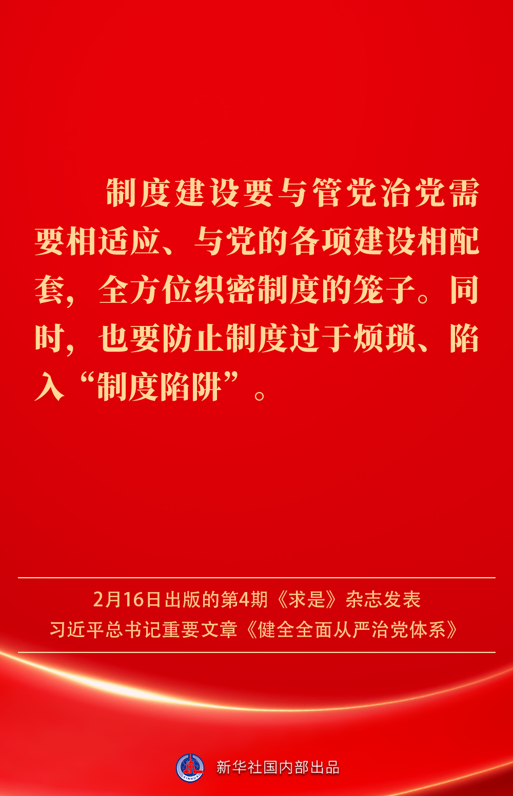 2月16日出版的第4期《求是》雜志發表習近平總書記重要文章《健全全面從嚴治黨體系》。如何進一步健全要素齊全、功能完備、科學規范、運行高效的全面從嚴治黨體系?習近平總書記闡明要旨——