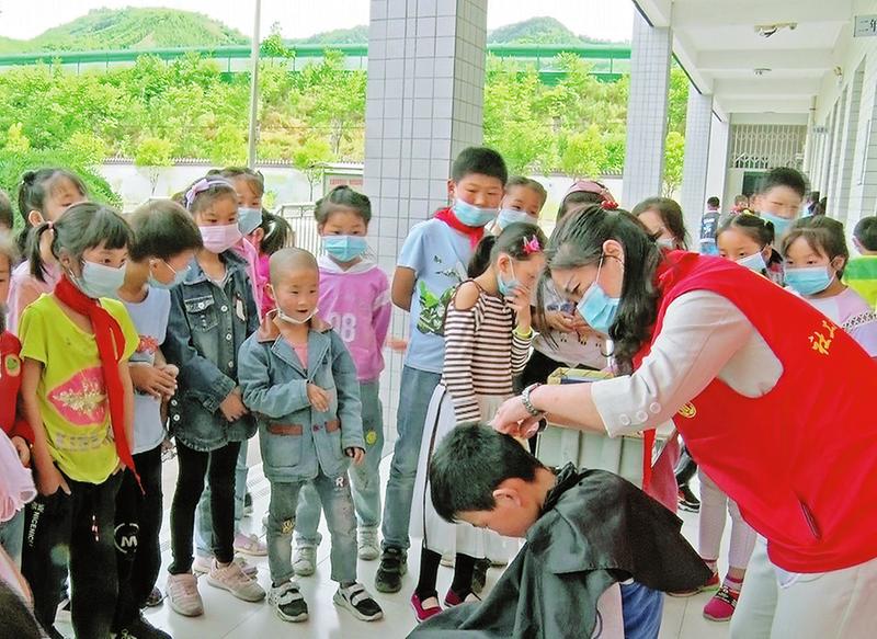 5月27日,市民政局、市慈善協會等5家單位組織職工在夜村鎮甘河小學舉行慶“六一”關愛兒童活動,向學生送去書包、乒乓球拍和籃球等價值4000多元的學習、體育用品,并為部分學生義務理發。(記者 王孝竹攝)