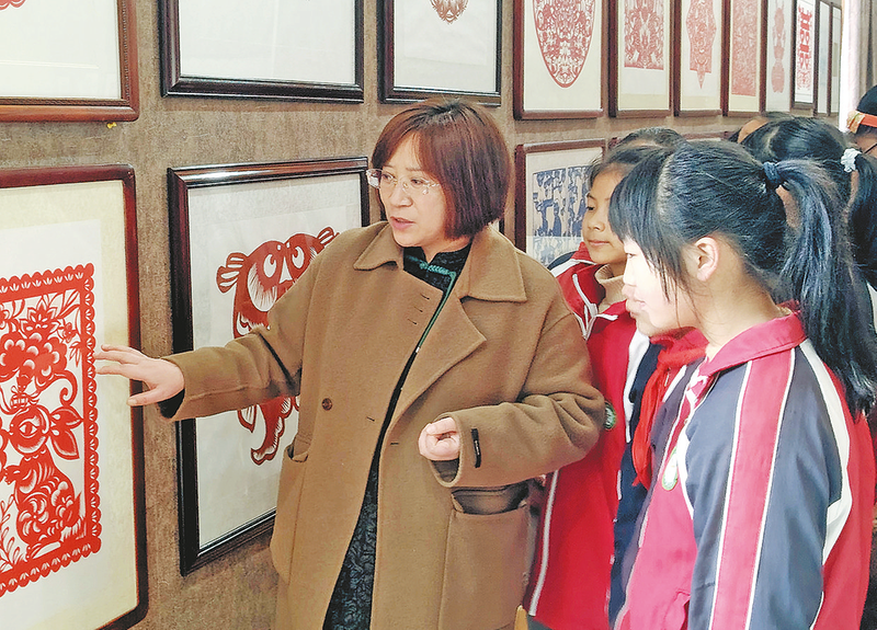 圖為王利娜帶領商州區第二小學學生參加剪紙比賽。 (本報記者 方 方 攝)