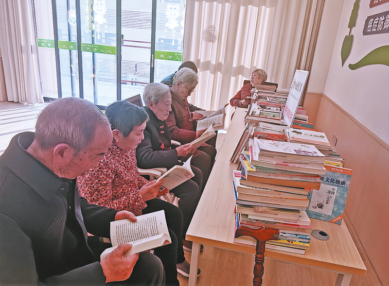 12月4日,商州區文旅局組織區圖書館走進陜西金菊養老中心,開展“敬老捐書行 溫情伴夕陽”志愿服務活動,現場捐贈圖書600余冊,讓老人們在書香浸潤中豐富精神文化生活。圖為老人們正在養老中心書吧翻閱新贈的圖書。 (本報記者 張 英 攝)