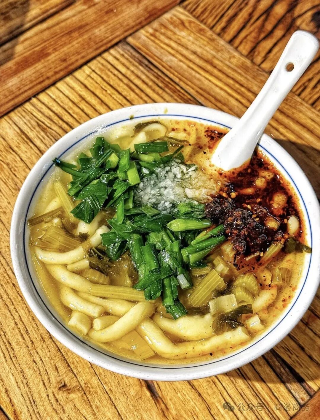 - 洛南攪團:玉米面慢攪而成的軟糯美味,介于涼粉和年糕之間的奇妙口感,澆上發酵酸水漿湯,撒上韭菜末和油潑辣子,酸辣開胃,解膩又頂飽。