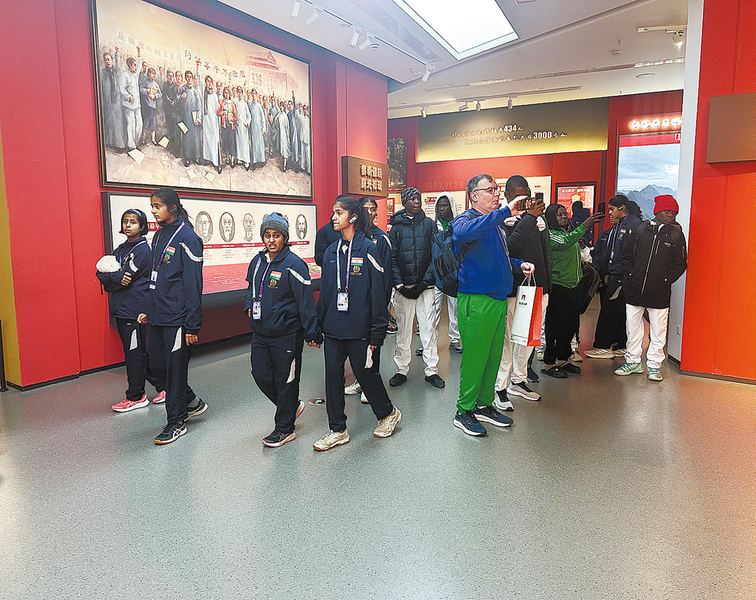 ④12月9日,各國運(yùn)動(dòng)員參觀秦嶺博物館,被館內(nèi)的展品深深吸引。