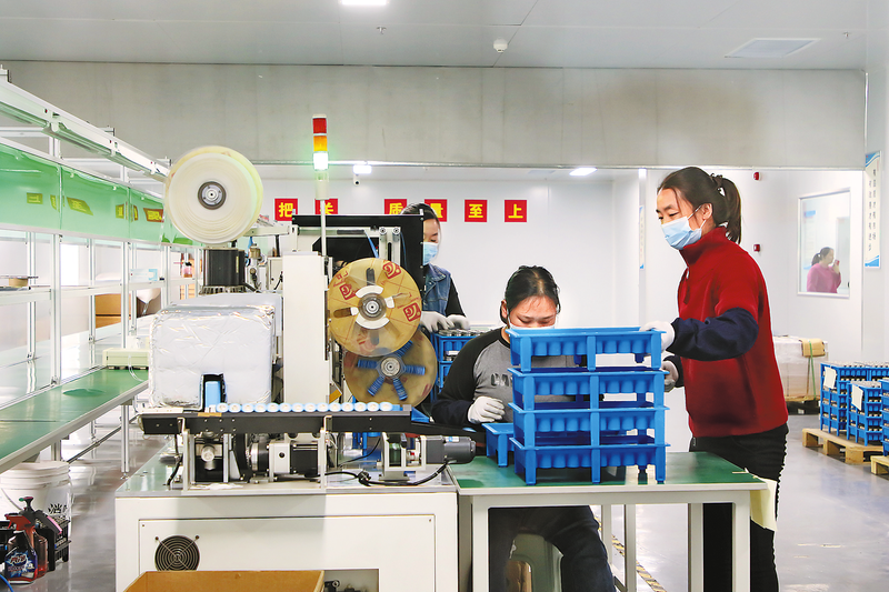 11月20日,在位于丹鳳縣的陜西朝陽動力電池總裝基地項目生產(chǎn)車間,工人正在組裝儲能電池。該項目總投資3.3億元,項目全面運營后,預計年產(chǎn)值達3億元、利稅2200萬元,帶動就業(yè)300余人。 (本報記者 楊 萌 攝)