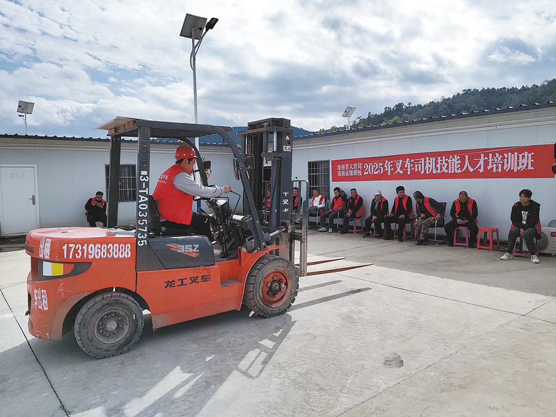 為全面打贏穩(wěn)就業(yè)促增收硬仗,洛南縣以“技能照亮前程”為主題,聚焦農(nóng)村勞動(dòng)力、脫貧群眾等重點(diǎn)群體就業(yè)需求,積極開展職業(yè)技能提升培訓(xùn),助力更多群眾掌握一技之長(zhǎng),實(shí)現(xiàn)就業(yè)創(chuàng)業(yè)。圖為10月15日,洛南縣人社局聯(lián)合洛南富康職業(yè)技能培訓(xùn)學(xué)校,在石門鎮(zhèn)易地搬遷社區(qū)為30多名群眾開展叉車司機(jī)培訓(xùn)。(本報(bào)通訊員 王建榮 攝)