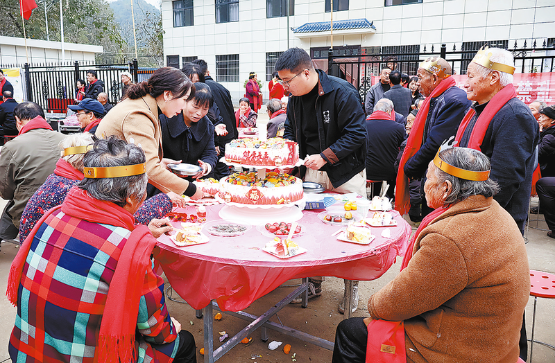 10月22日,石坡鎮(zhèn)石羊村舉行孝德主題實(shí)踐活動(dòng)。圖為老人聚集在一體過(guò)集體生日。