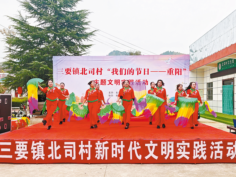 10月29日,三要鎮(zhèn)北司村舉行“我們的節(jié)日——重陽(yáng)”主題文明實(shí)踐活動(dòng)。圖為群眾在表演孝德文藝節(jié)目。