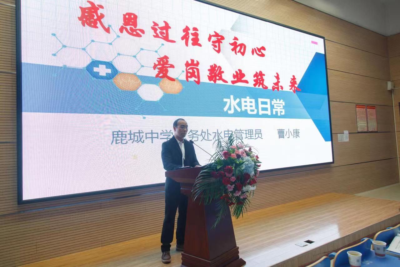 報(bào)告會(huì)上,鹿城中學(xué)六名教師代表分別講述了日常工作中愛(ài)崗敬業(yè)、擔(dān)當(dāng)作為、甘于奉獻(xiàn)的先進(jìn)事跡。趙利民老師對(duì)工作愛(ài)得癡狂,對(duì)學(xué)生愛(ài)得真切;李莉老師用母愛(ài)般的溫暖喚回孩子心靈深處的自信,以綠葉情懷呵護(hù)“花兒們”茁壯成長(zhǎng)、絢麗綻放;李書華老師言傳身教、包容接納,引領(lǐng)學(xué)生樹(shù)立正確“三觀”,創(chuàng)造美好的“未來(lái)”;王翔老師用愛(ài)播撒希望、用真誠(chéng)對(duì)待學(xué)生,滿懷愛(ài)心培育時(shí)代新人;路新生老師以愛(ài)心和耐心搭建起師生之間的情感橋梁,以責(zé)任和擔(dān)當(dāng)書寫教育生涯的華麗篇章;曹小康老師維修水電,隨叫隨到,耐心細(xì)致,勤懇做事,踏實(shí)做人,平凡的崗位演繹出不平凡的感動(dòng)。