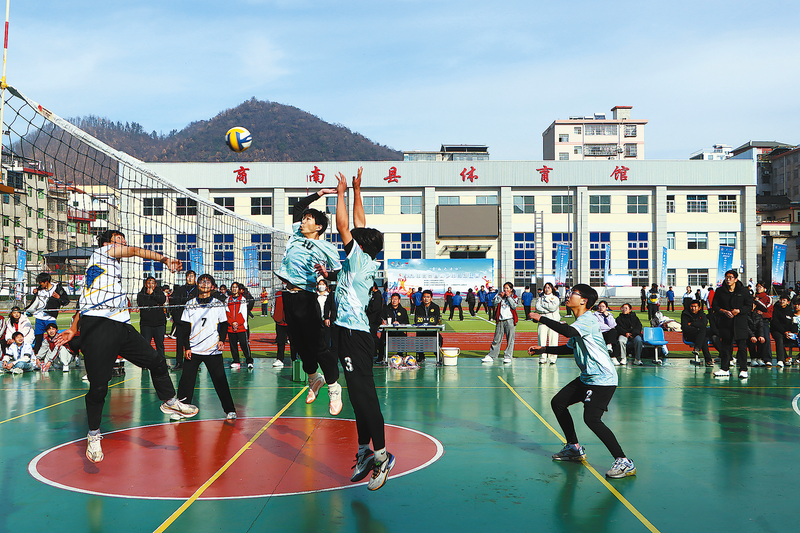 12月16日,“前海開源杯”2025年商南縣青少年排球賽在縣體育場舉行,吸引全縣17支代表隊同臺競技,幫助青少年在運動中強健體魄、磨礪意志。圖為當日男子組比賽現場。 (本報通訊員 李 瀟 攝)