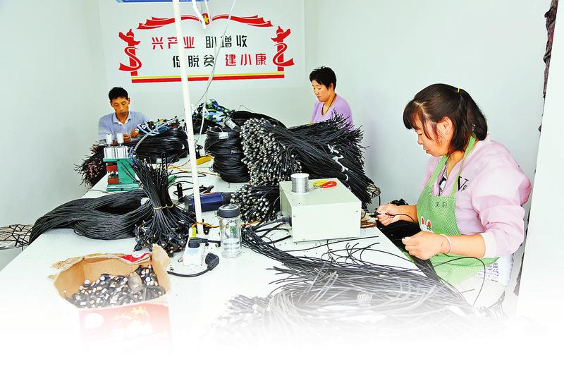 “目前受場地限制,我們分了3個房間來做,工人也招收的比較少。等明年新廠房建成,能夠解決六七十人進廠工作。”李毓宏指著鎮政府旁邊的一塊空地說。現在,李毓宏每個月有3000元的收入,也能照顧家里父母、孩子,真正實現了樓上居住、樓下上班。